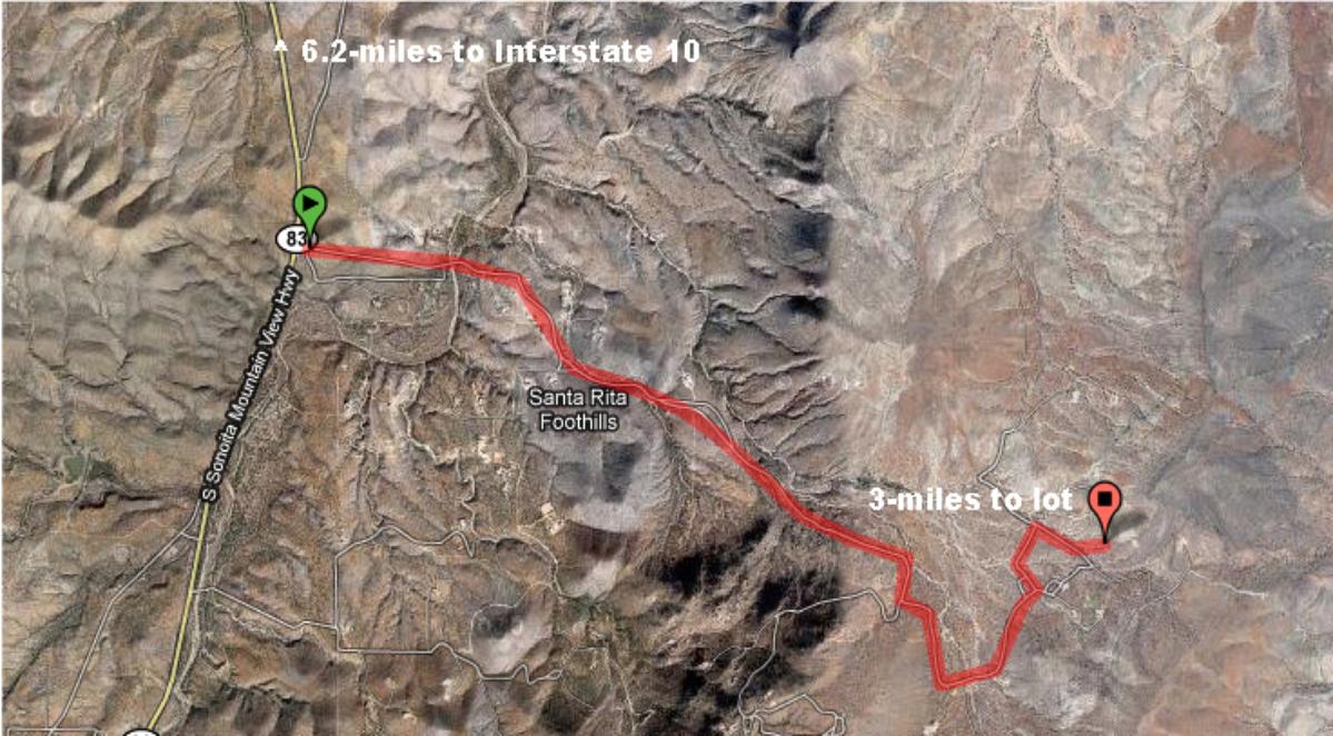 Road on the way to the lot before you cross the gully. In the distance you can see the road go over the pass.